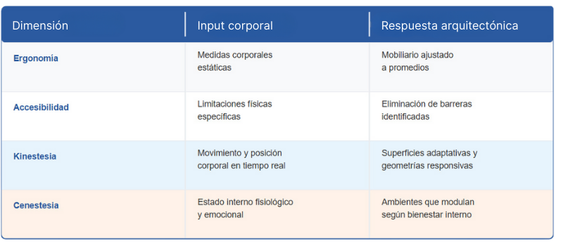 El diseño somatosensorial representa la convergencia entre neurociencia corporal y arquitectura. Estos espacios procesan información de tus sentidos internos para generar respuestas ambientales específicas. Más allá de ergonomía básica, «leen» tanto tu movimiento kinestésico como tu estado cenestésico interno. Crean ambientes que se ajustan a tu experiencia corporal completa en tiempo real.